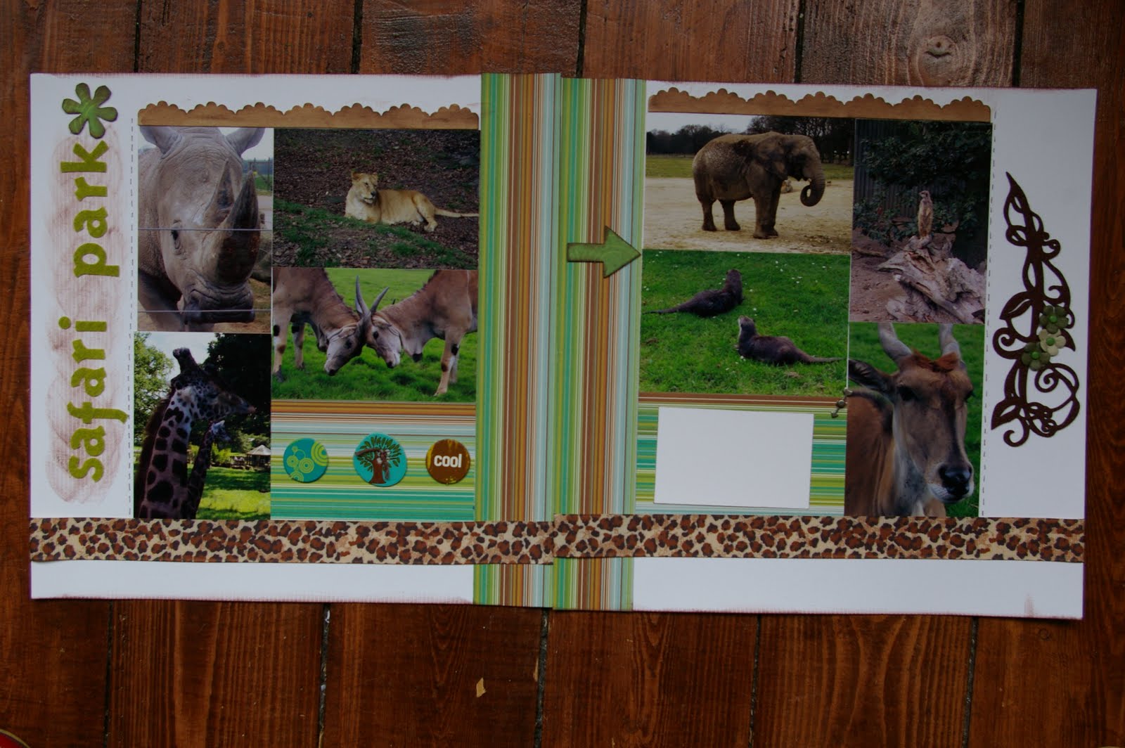 This is just a quick and simple layout that I did recently of the Safari Park. We have got a yearly membership so we go quite often and I have got loads of pictures and I wasn't sure how to scrap them. I decided that I would do a layout that focused on the animals. I added the journalling after I had taken the photo.